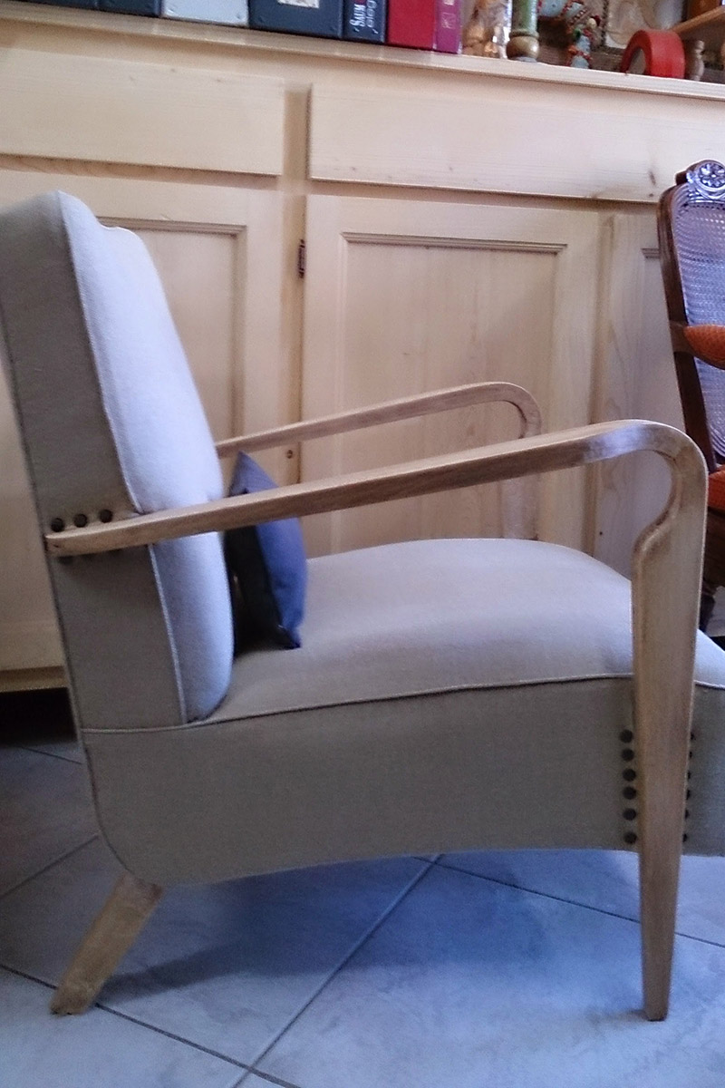 poltrona vintage anni 1950 con rivestimento in lino grezzo