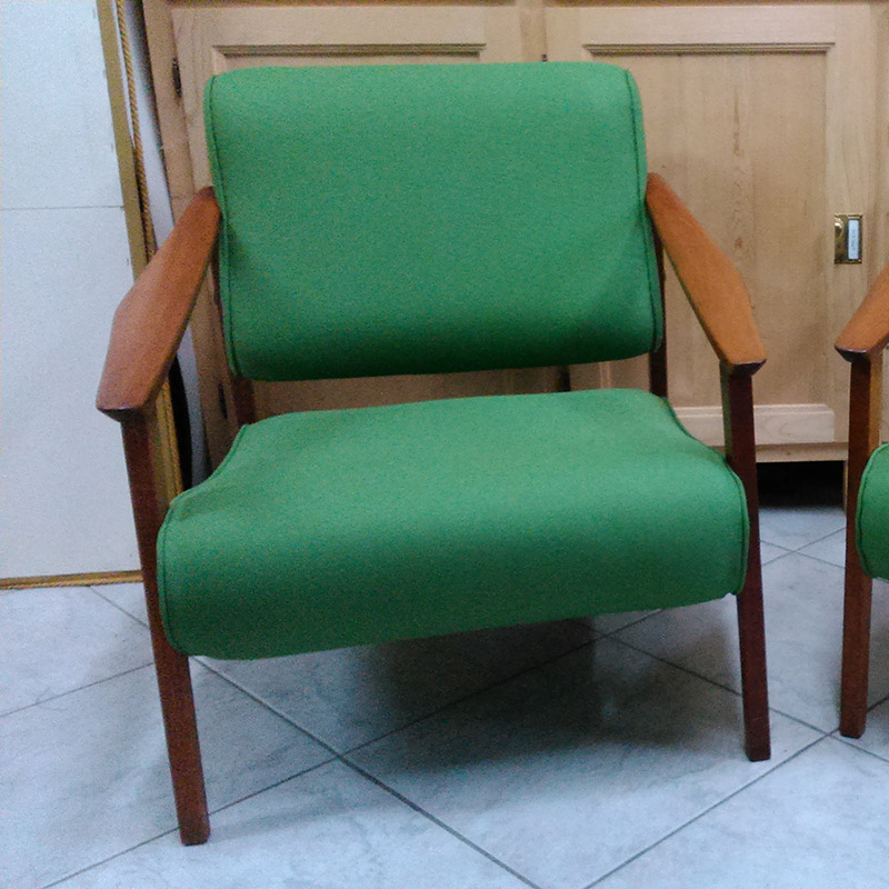 poltrone danesi Vintage riportate a nuova vita rivestimenti in tessuto Isatex Textile