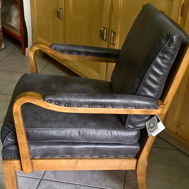 poltrona vintage in legno massello anni 1940 rivestimento in pelle finitura a borchie