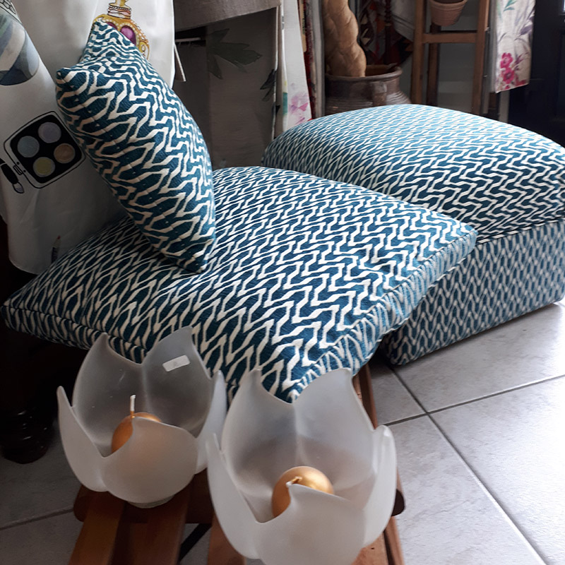 rivestimento personalizzato di puff e cuscini tessuto Simta