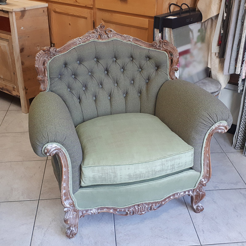 rivisitazione di poltrona in stile “Barocco Roccocò” in chiave moderna
