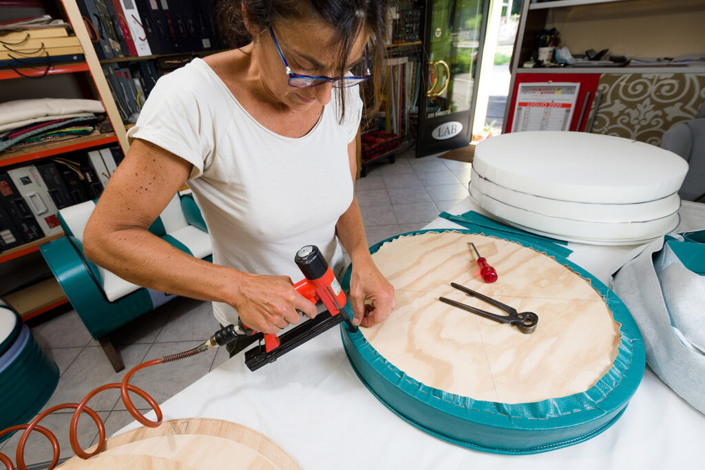 Ho acquisito questa antica tradizione grazie a Mastri Tappezzieri di una rinomata bottega artigianale in Cremona e ho cercato di portare modernità attraverso l’uso dei colori e nelle forme.